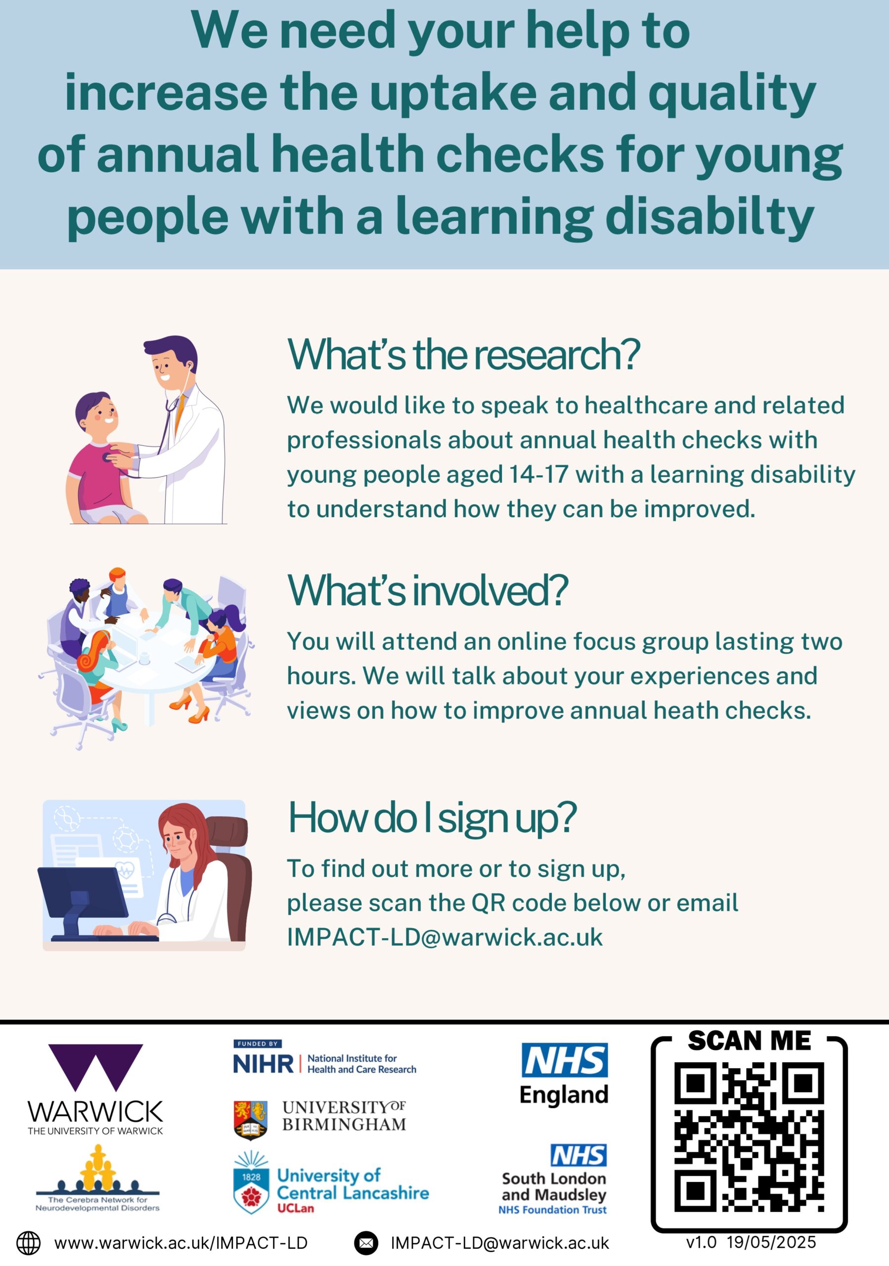 We need your help to increase the uptake and quality of annual health checks for young people with a learning disability Posted by: mohammedislam96 - Posted on: 4th December 20254th December 2025