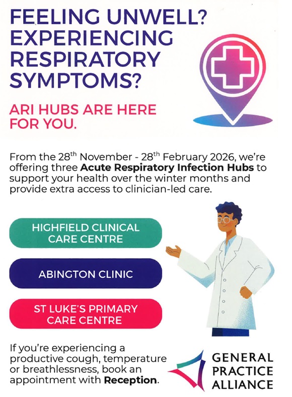 Feeling Unwell? Experiencing Respiratory Symptoms? ARI (Acute Respiratory Infection) Hubs are here for you from 28th November 2025 – 28th February 2026. Posted by: mohammedislam96 - Posted on: 16th December 202516th December 2025